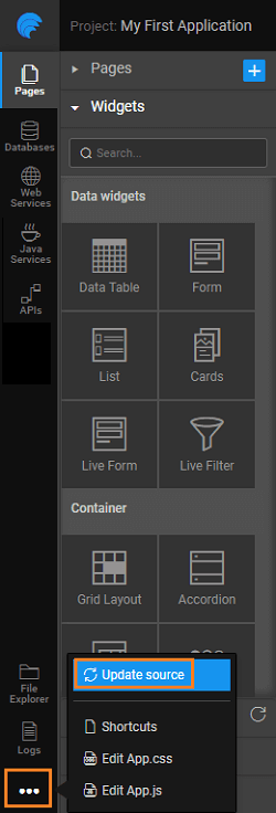 In the previous section, we have seen how WaveMaker provides options to export the project as zip using Export menu and provides Update Source option to update the project sources back. Sometimes projects may fail to open because of conflicts or some corrupt files. In such cases, Export & Update Source options without opening the project itself come in handy. This will help to export the project in conflict/corrupt state, fix the project outside of WaveMaker using an IDE and update the content.