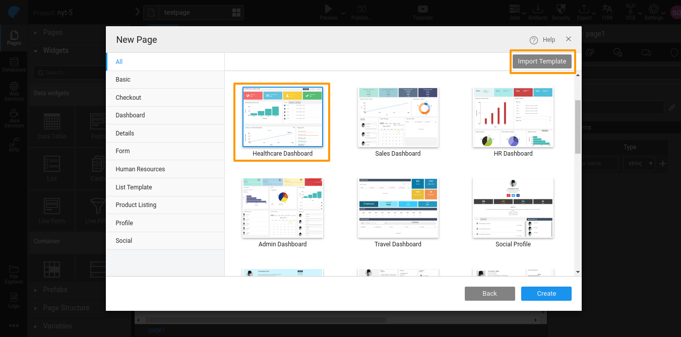You can create and design a new page like any other page of an application. You can use an existing template and make changes. Here we have created a Dashboard page and are making changes to the existing Sales Dashboard template.