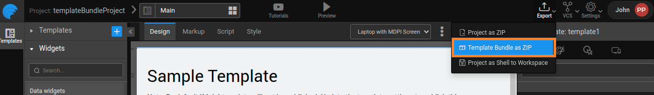 • Non-team version: The developer needs to export the Template Bundle as zip file and then import it in any application within their Dashboard.