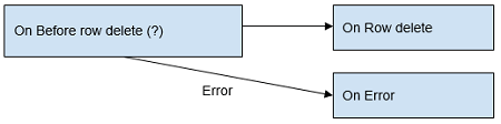 On Before Row Delete | This event is called before a record is deleted in a table. |