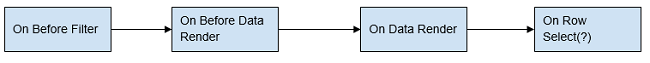On Before Data Render | This event will be called the before the data is rendered in the Data Table. Note: The data accessible is restricted to the current page of the Data Table. Use Case: If you want to change the display value based on the values of a column |