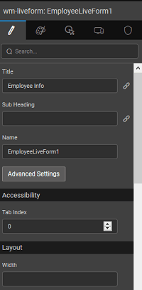 Set the value or bind to another widget like Data Table, List or Live Filter. These define the values that display when the Live Form loads.