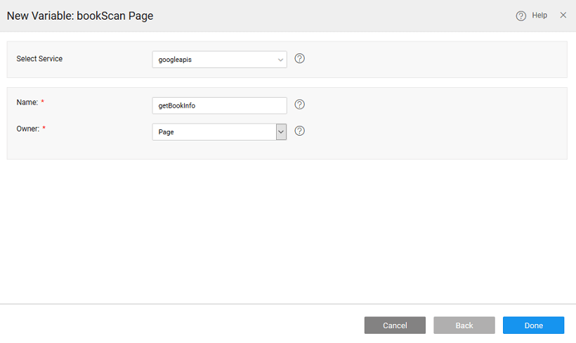 1. Bind the value of q with barcode scanner ‘dataValue’ property and save the variable.