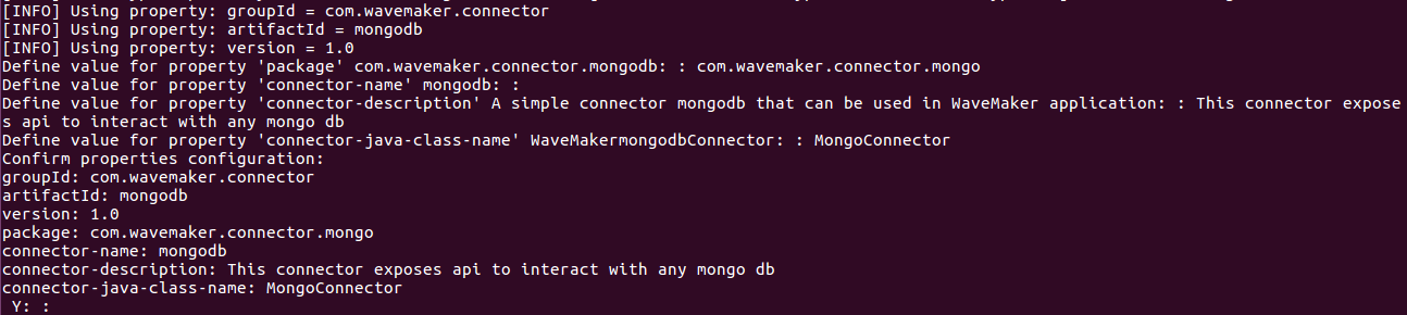 For example, in the following example, we are going to create a MongoDB Connector using wavemaker-connector-archetype.