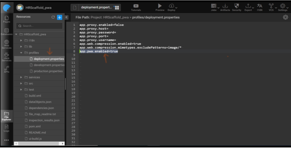 Create a project, add the PWA flag, and set the value as “true”. For example, app.pwa.enabled=true