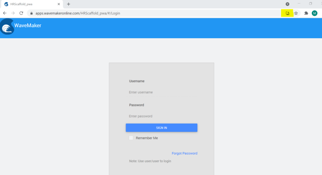 - Once the app loads, an install icon shows up in the address bar of the browser.