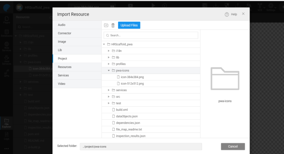 - If no icons are present in the "pwa-icons" directory, PWA will use the WaveMaker default icons.