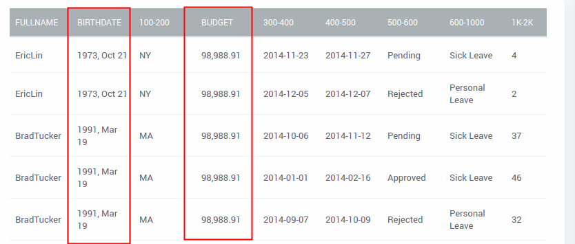 Customize Dynamic Data Table