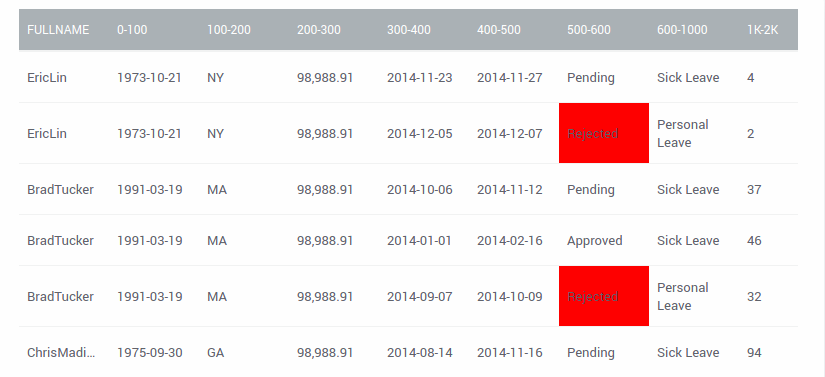 In the given example, if the cell value is Rejected