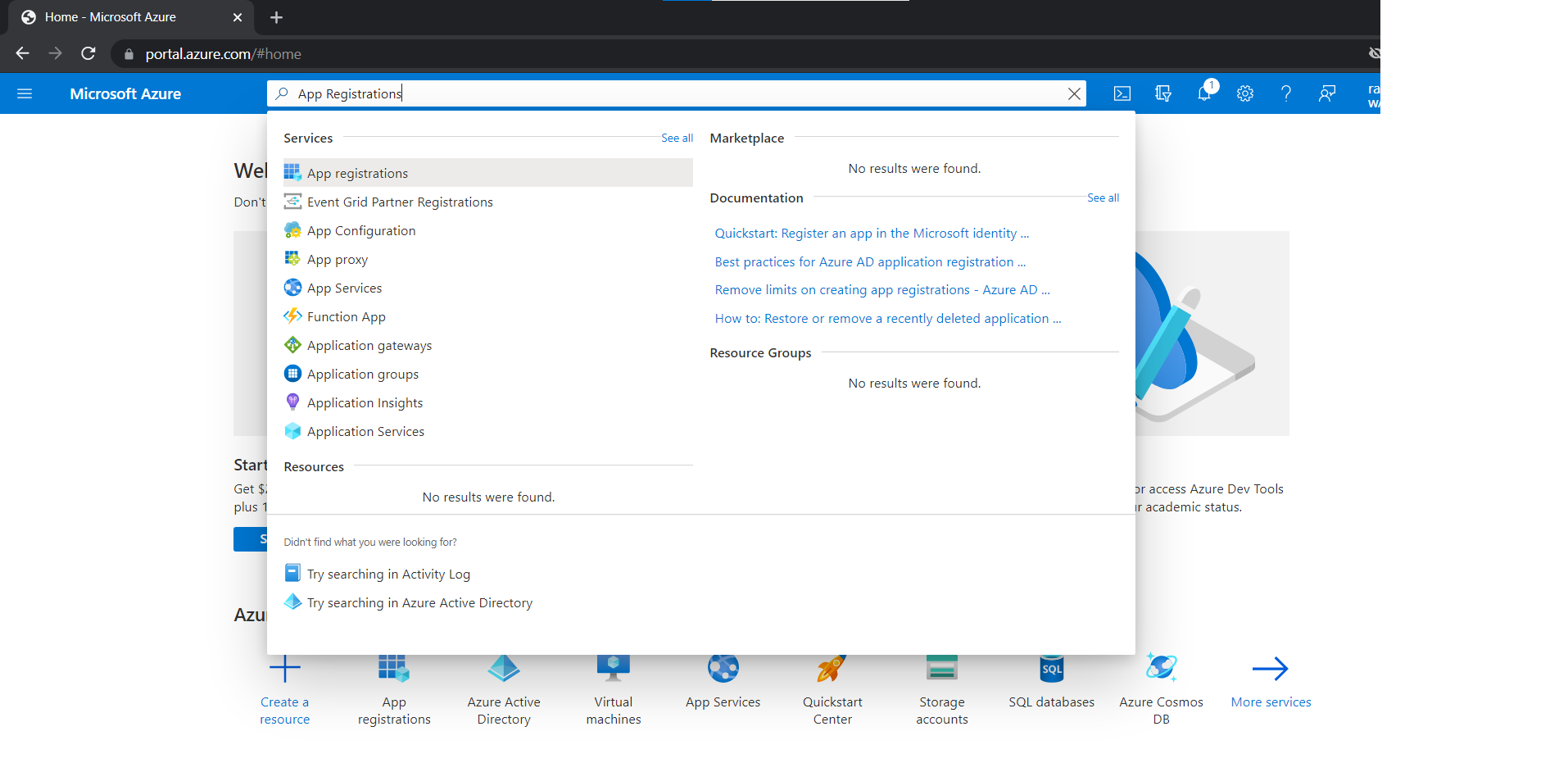 Log on to https://portal.azure.com and enter your credentials. It redirects to the Azure Portal Home page.