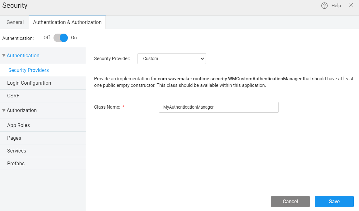 - Create a Java Service MyAuthenticationManager by implementing a WMCustomAuthenticationManager interface.
