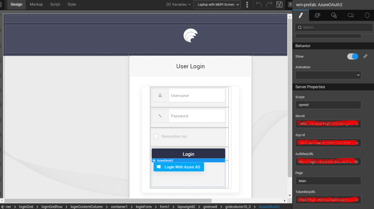 Download the prefab from Git repository Azure OAuth Prefab and import it as a prefab on your WaveMaker Studio.
