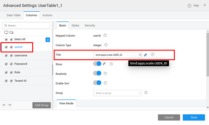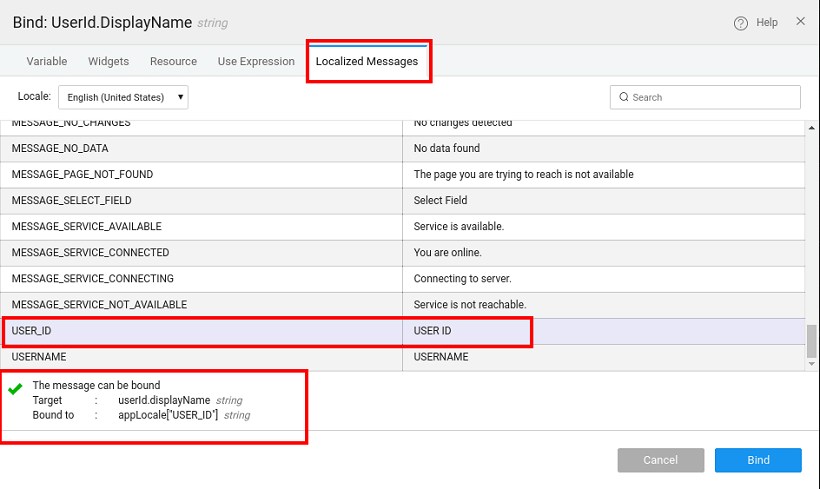 3. Bind the respective message keys to the "Title" property of the columns.