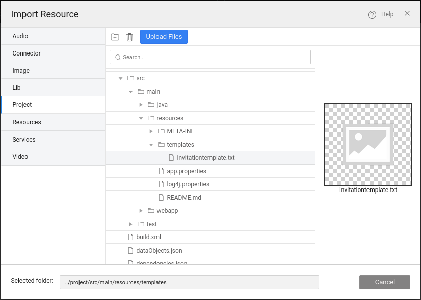 - Import the downloaded email-connector zip into your app using the Import Resource option to the Connector folder.
