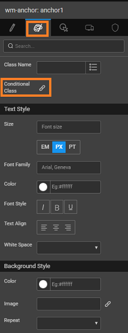 Conditional Class property allows you to bind an expression which will be evaluated and appended as classes to a widget.