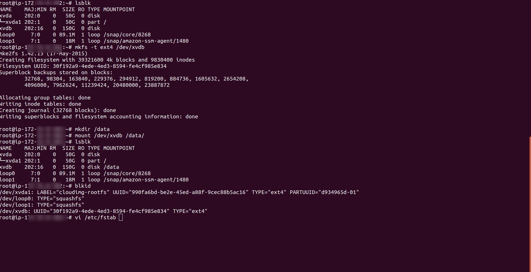 - To mount an attached EBS volume on every system reboot, add an entry for the device to the /etc/fstab file.
