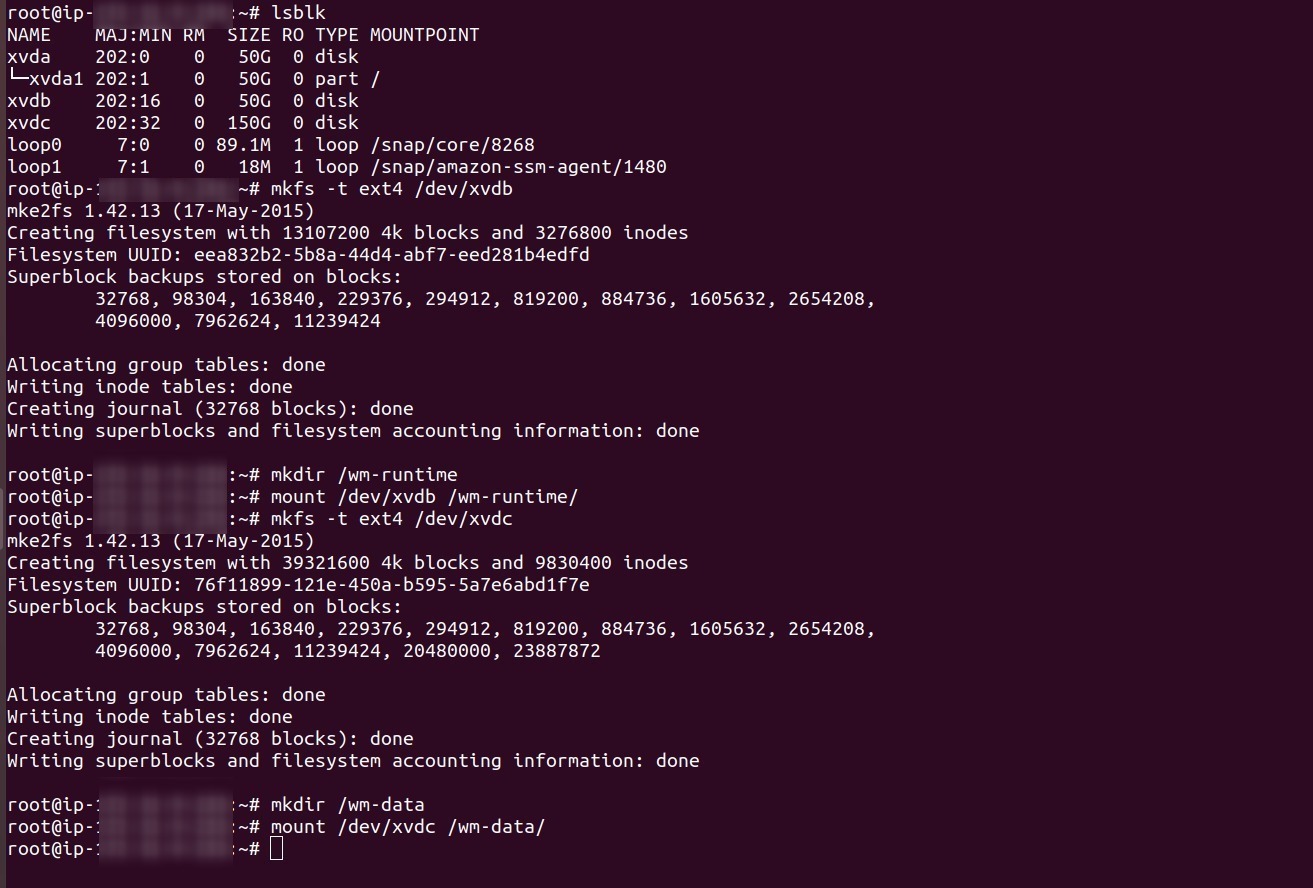 command to create a mount point directory for the volume. The mount point is where the volume is located in the file system tree and where you read and write files after you mount the volume. For WME-Setup, create two directories using the following commands.