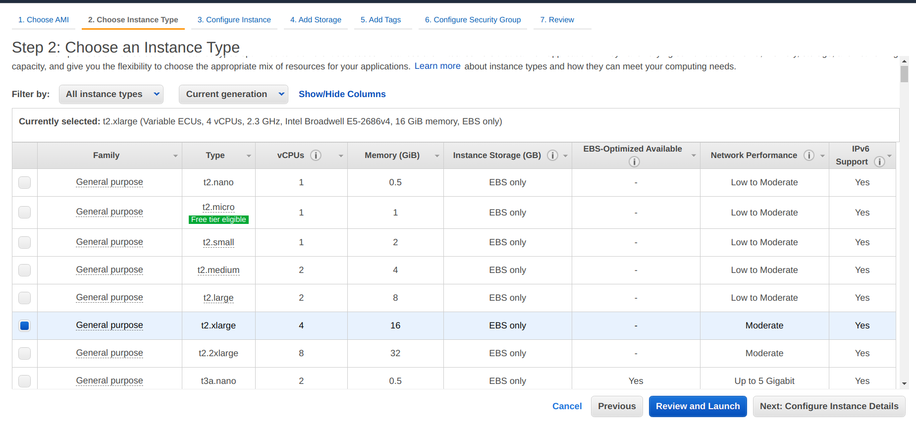 - Choose Launch Instance, choose an ubuntu 16.04 Amazon Machine Image (AMI), or if you have any ubuntu 20.04 AMI, select it.