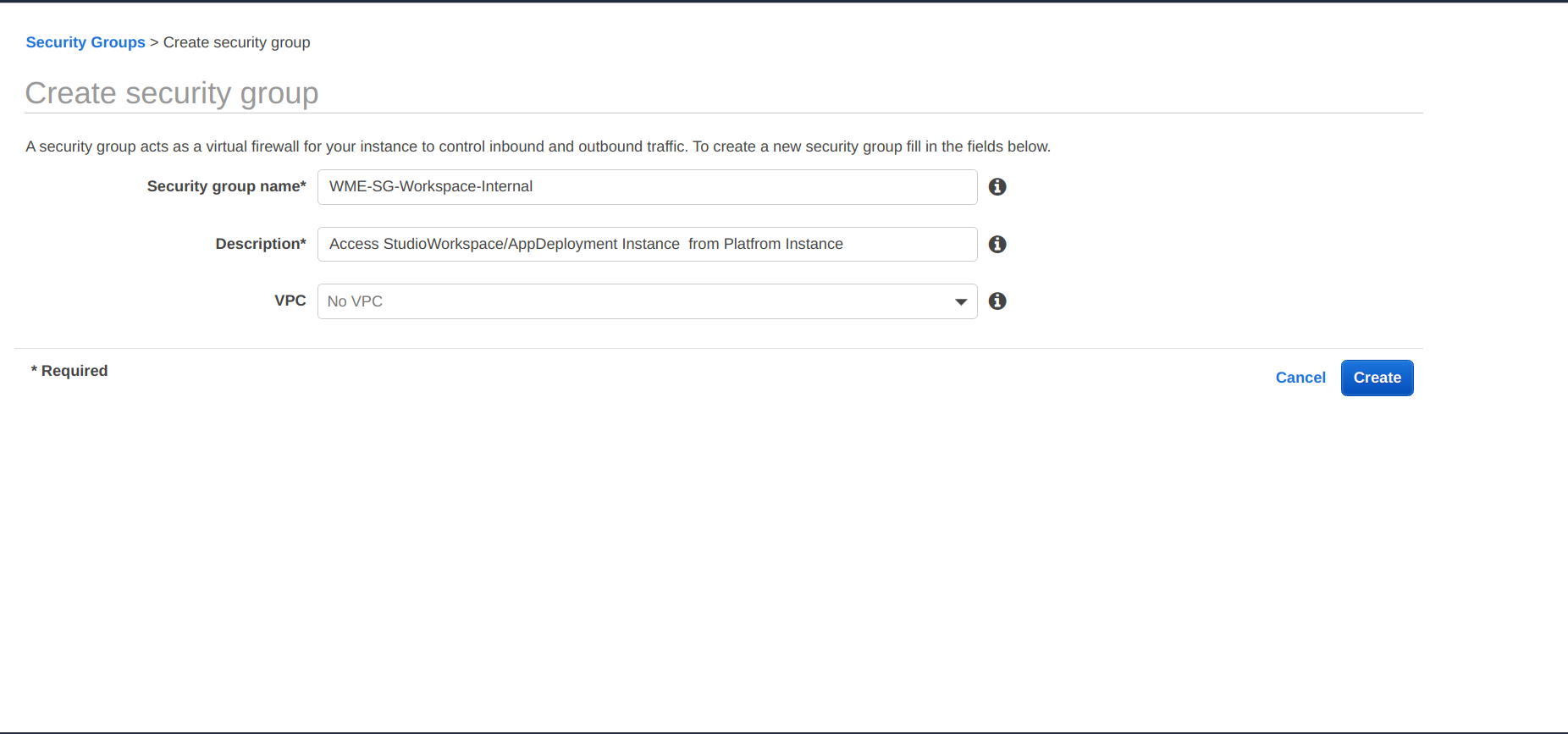 - For WME setup, it requires you to have three security groups in AWS EC2. Those are,
